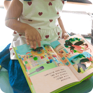 からふるでは活動と活動の間に手遊びや絵本を読んで気持ちの切り替えを行ったり、活動の区切りを知らせたりしています。様々な絵本に触れることで、感性を育て、興味・関心の幅を広げていきます。