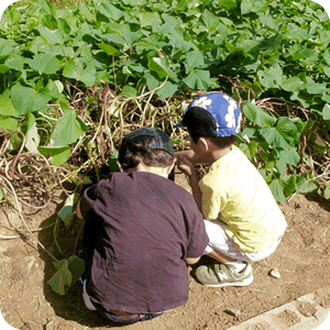 野菜を育てたり、畑の土を触ったりと自然に触れることで、五感を育みながら作物や生き物と触れる経験を増やしていきます。