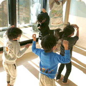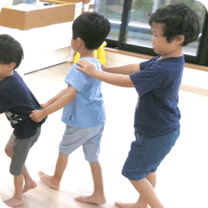 その子のペースにあった運動遊び(体幹遊び、感覚遊び、手と指先遊びなど)を楽しみながら、基本となる身体づくりを目指していきます。