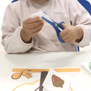 子ども一人ひとりの発達に合わせて製作を行い、様々な素材に触れながら、力をコントロールする感覚を身につけ、手先の器用さを育てていきます。