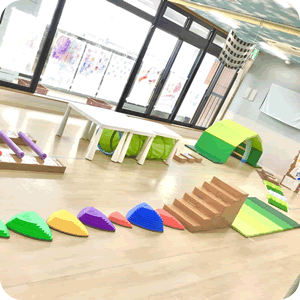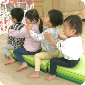 その子のペースにあった運動遊び(体幹遊び、感覚遊び、手と指先遊びなど)を楽しみながら、基本となる身体づくりを目指していきます。
