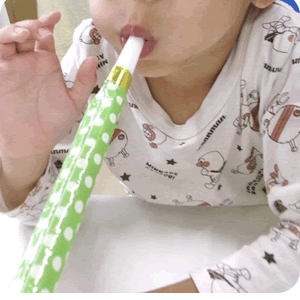 音楽に合わせてお口や舌を大きく動かします。風車や吹き戻しで息を吹くふーふー遊びをしたり声を出して音を楽しんだりします。お口遊びを続けることで、「食べる、話す、表情をつくる、呼吸を助ける」といった口腔の十分な発達を促していきます。
